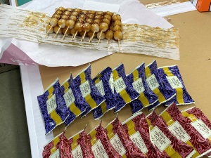 | 今日のおやつはK社長から差し入れの『やまざきや』さんのお団子です。歯ごたえと旨味があり、みたらし&くるみ団子を皆喜んでいただきました。上田市のお団子屋さんの中でも人気がありますよ。 |
